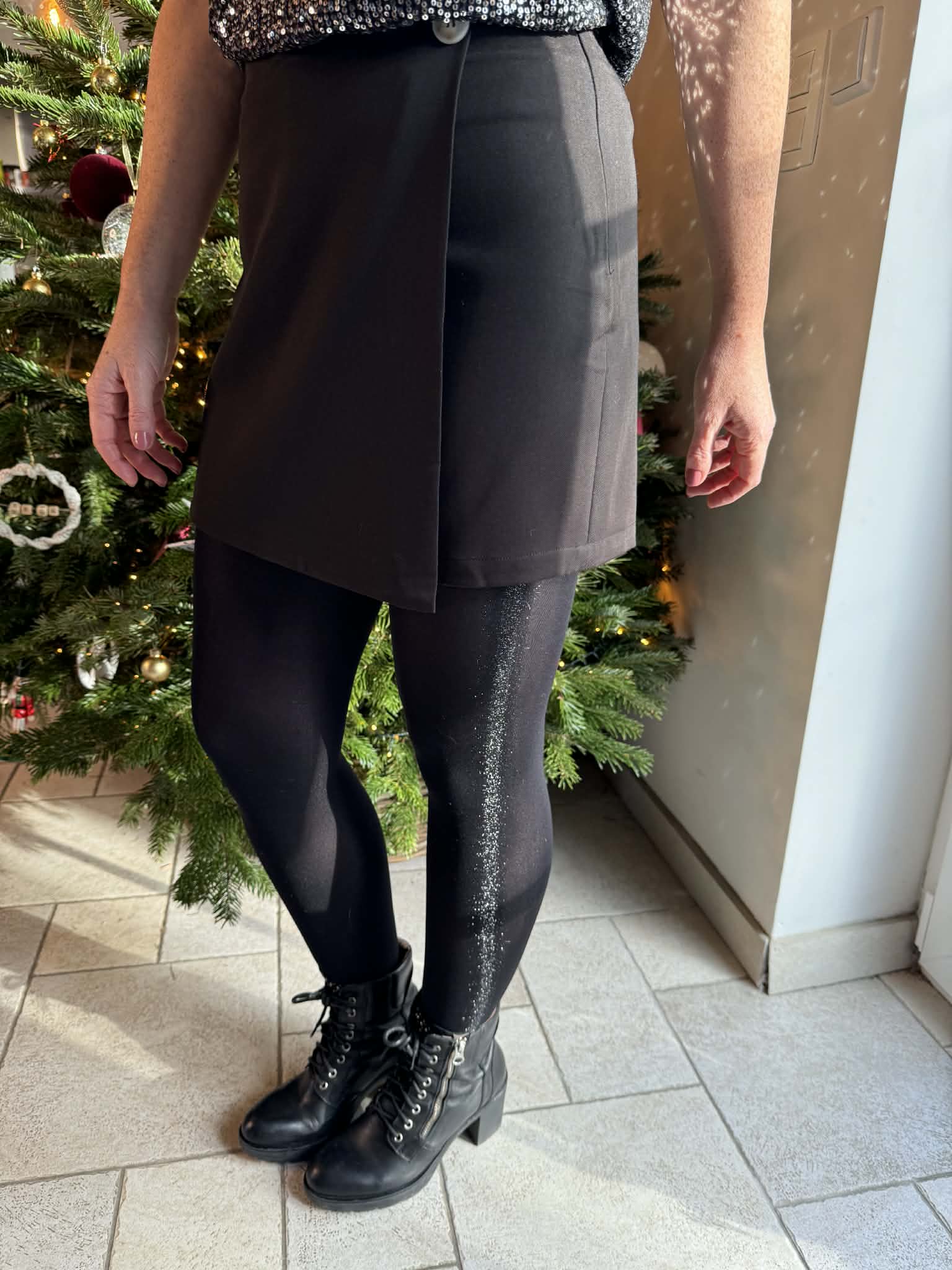 Bas collant strass argentés sur les côtés