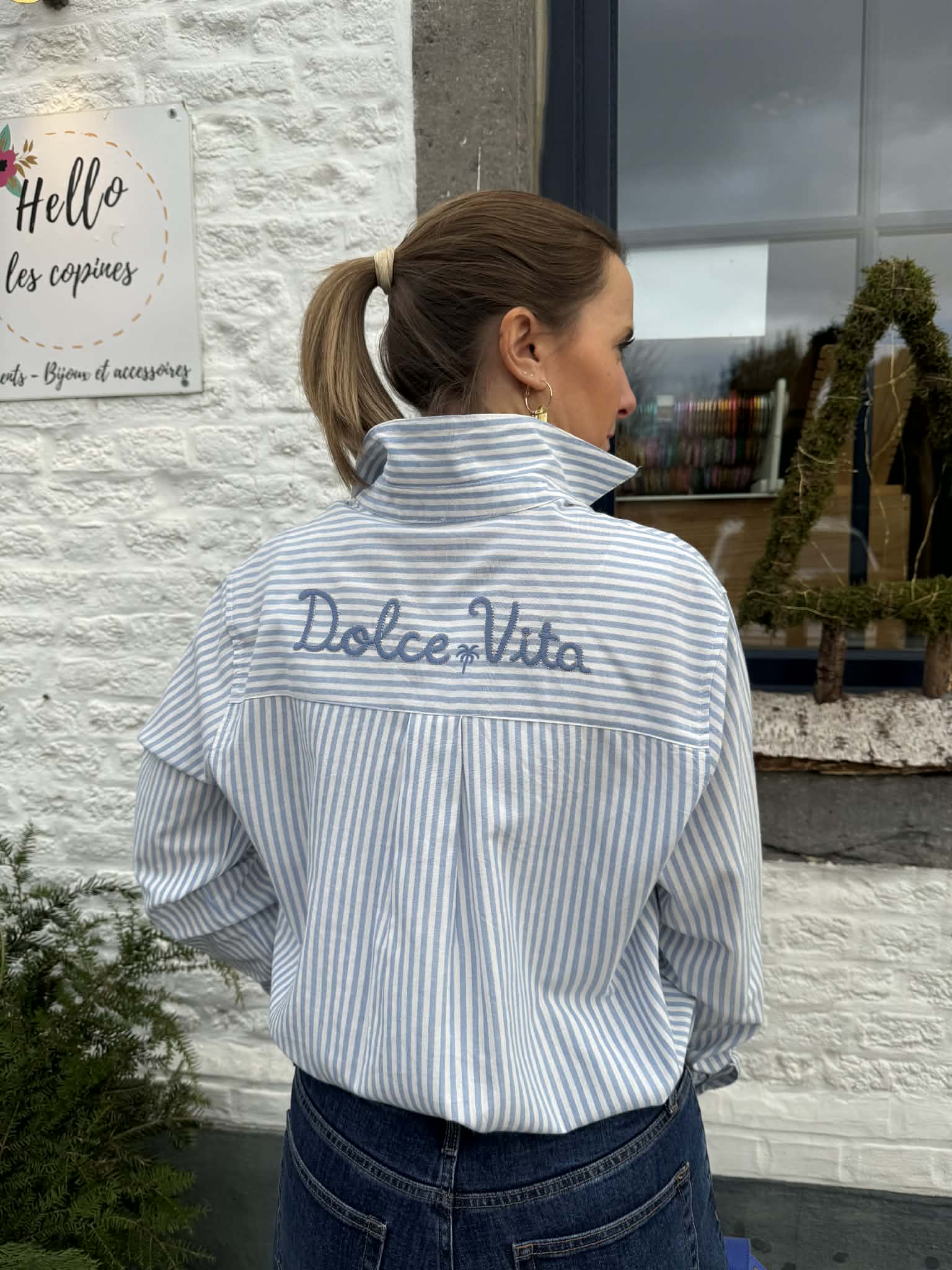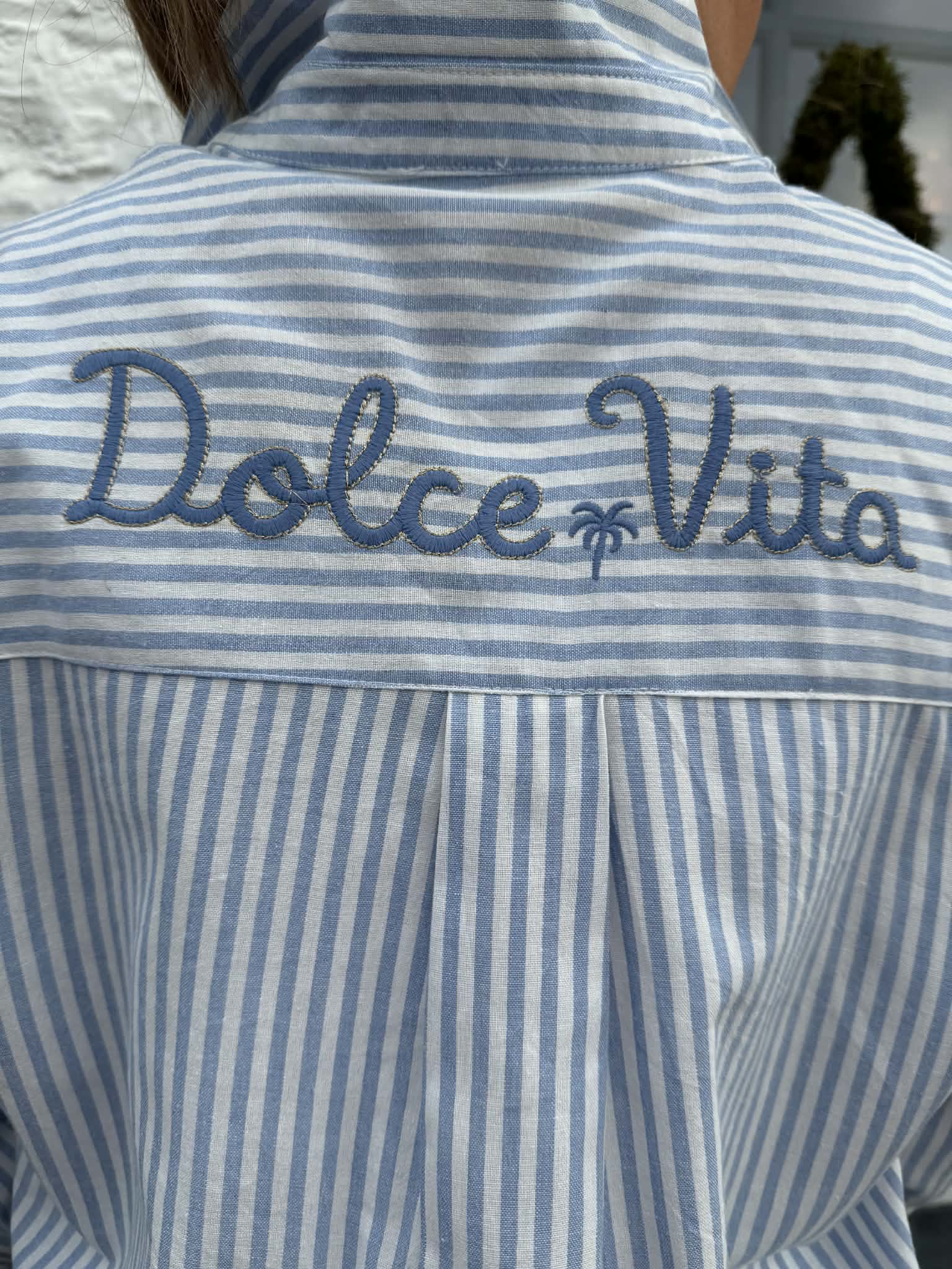 Chemise lignée avec broderie « Dolce vita » dans le dos