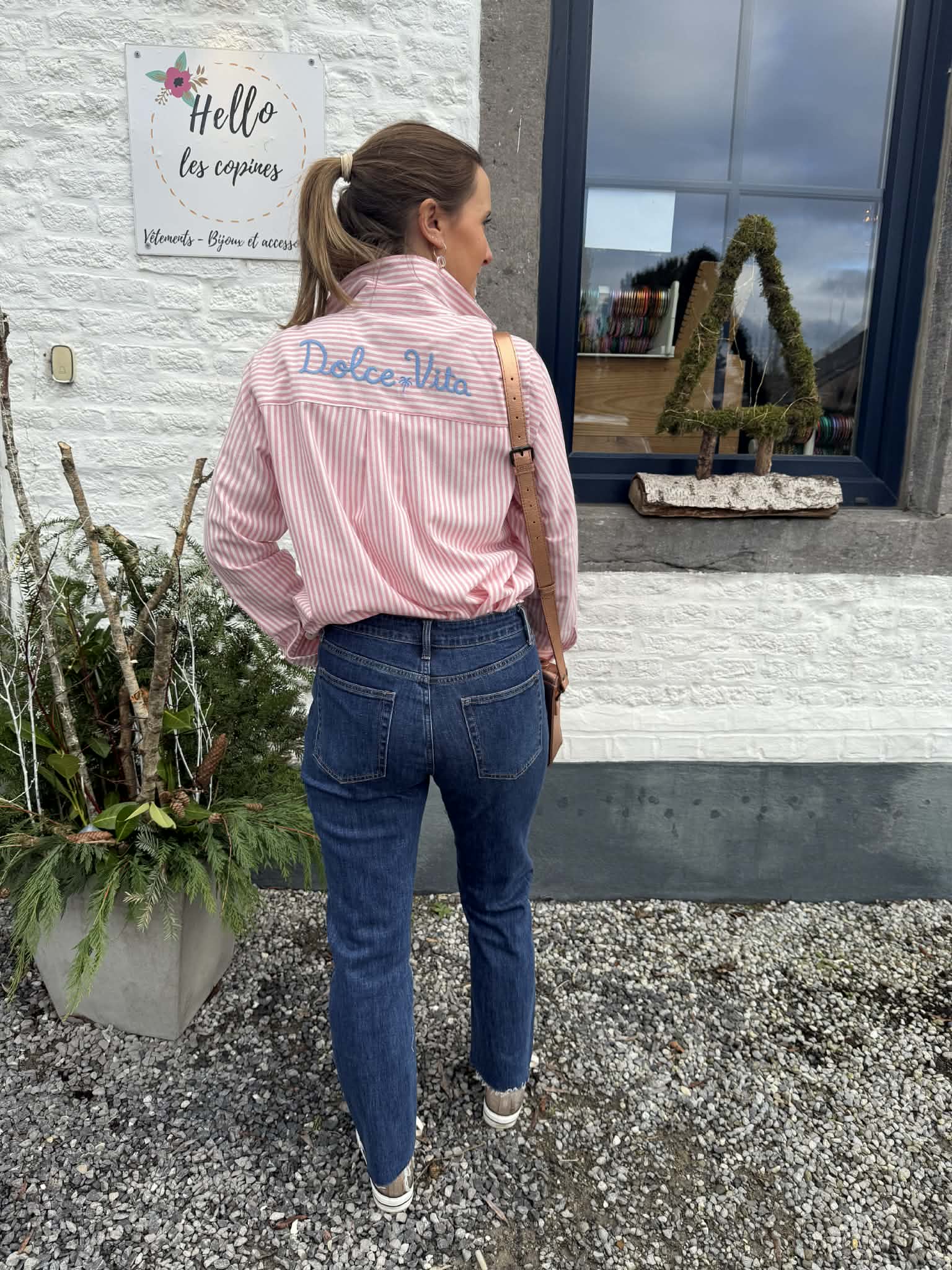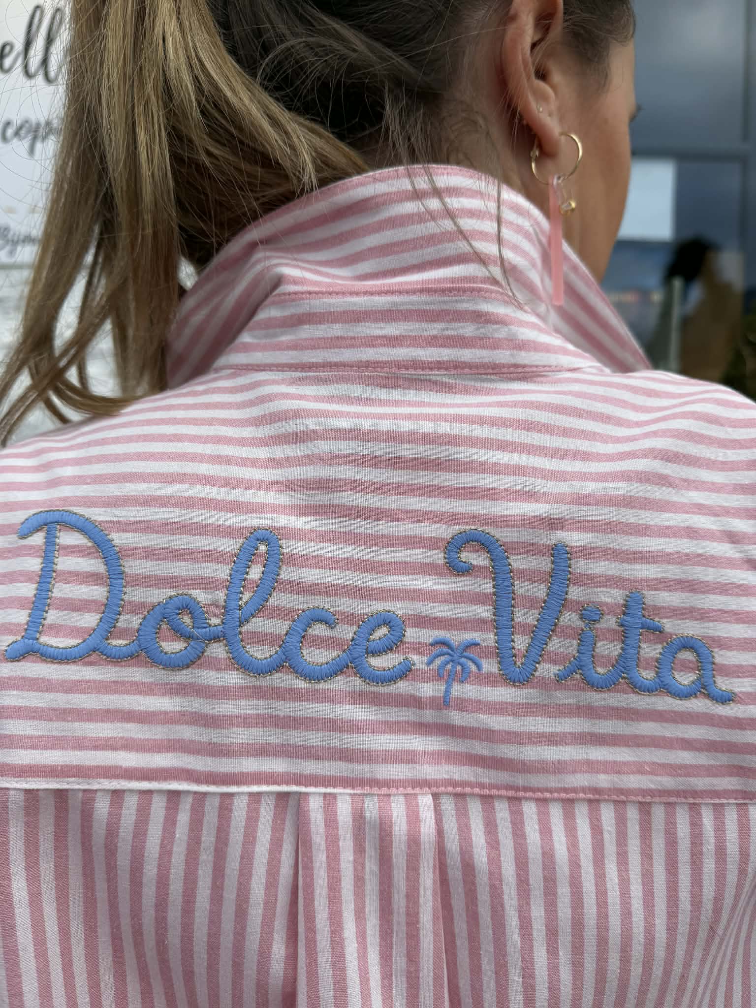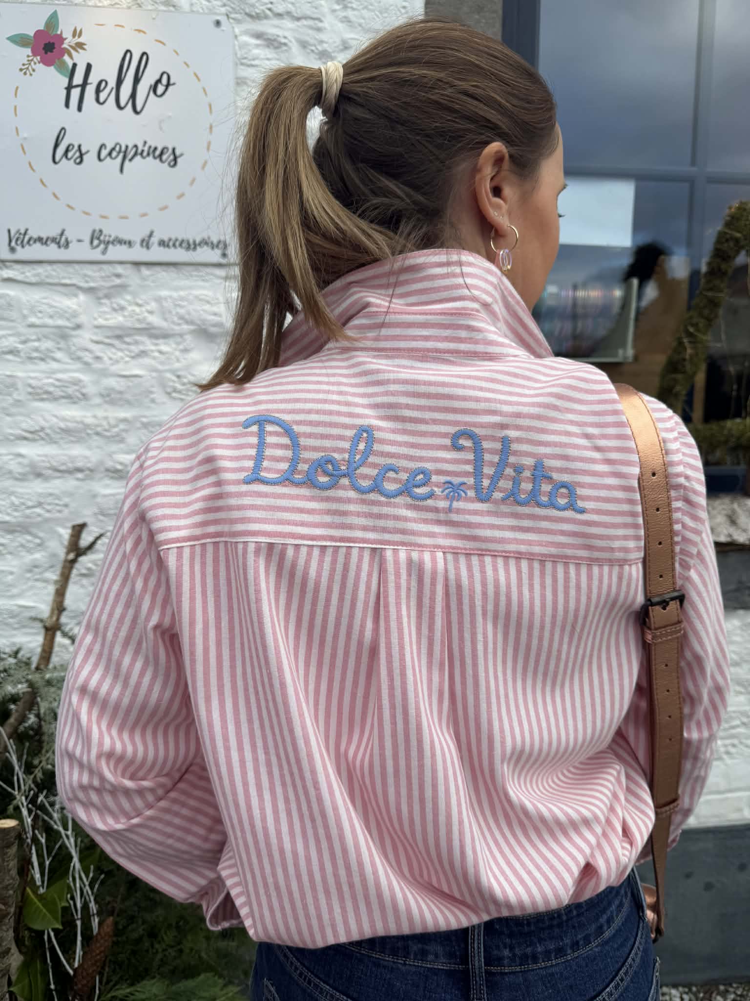 Chemise lignée avec broderie « Dolce vita » dans le dos