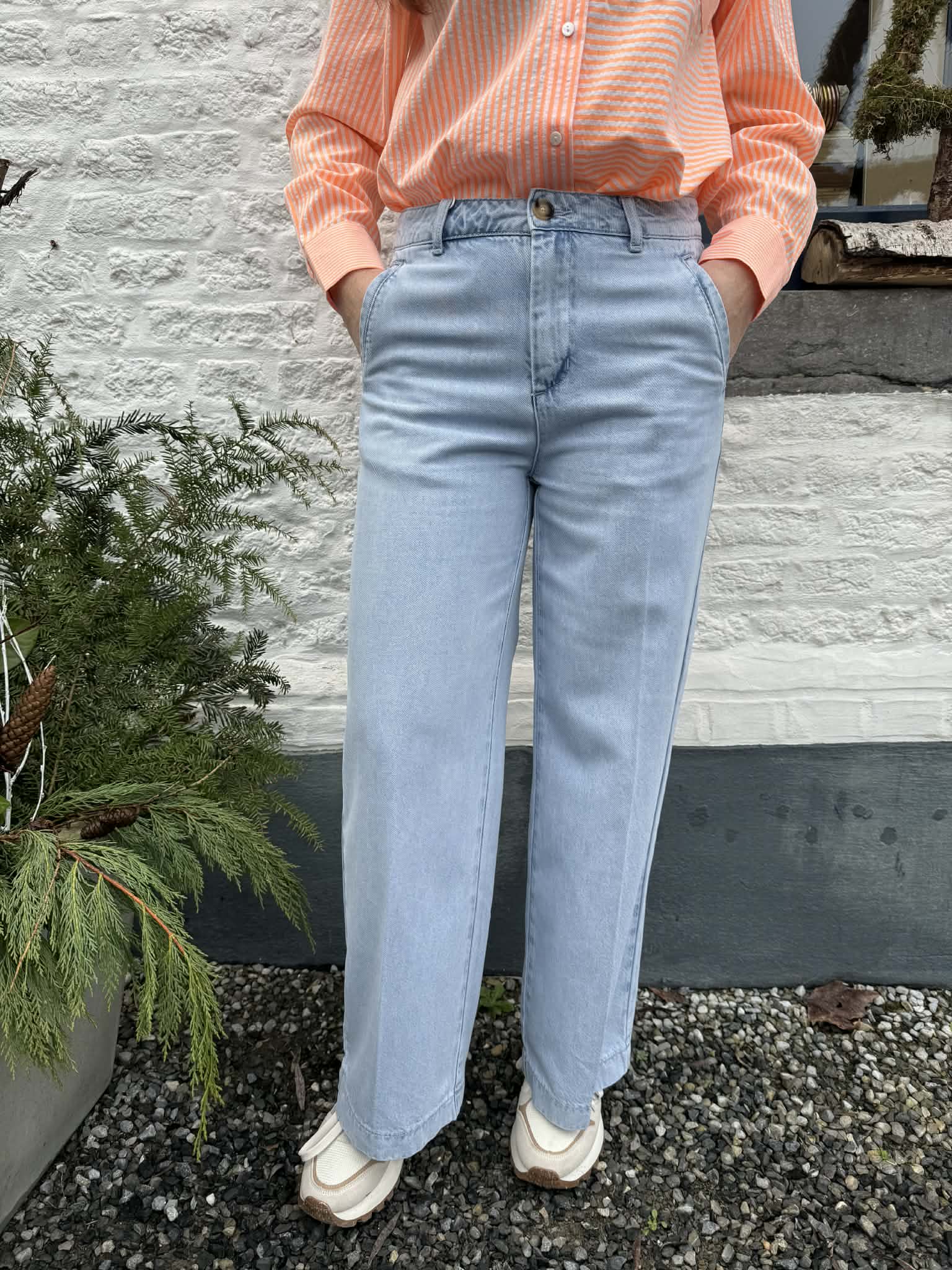 Le jeans Eleonorette est un jeans coupe wide, taille haute, plus léger, denim clair.