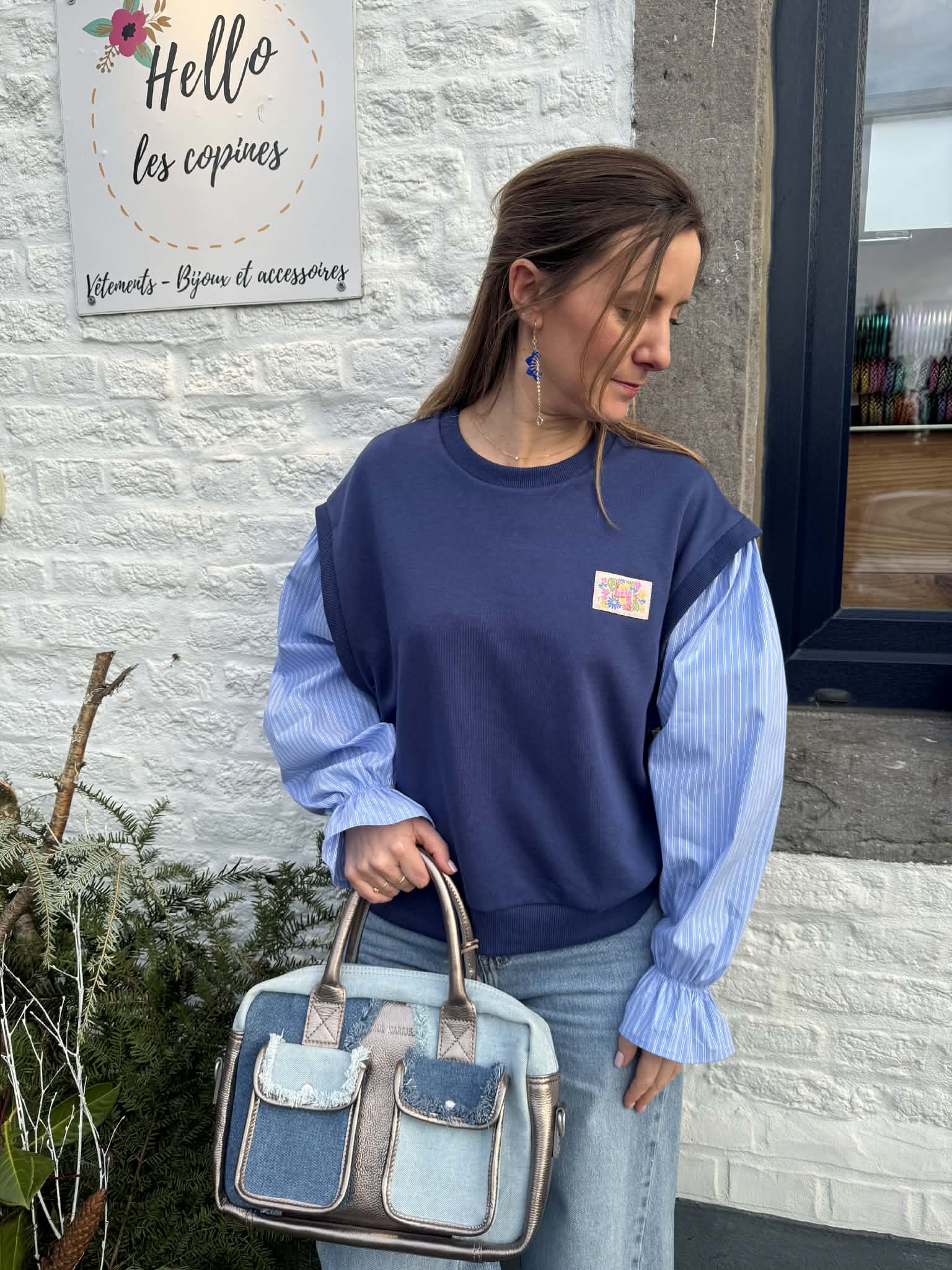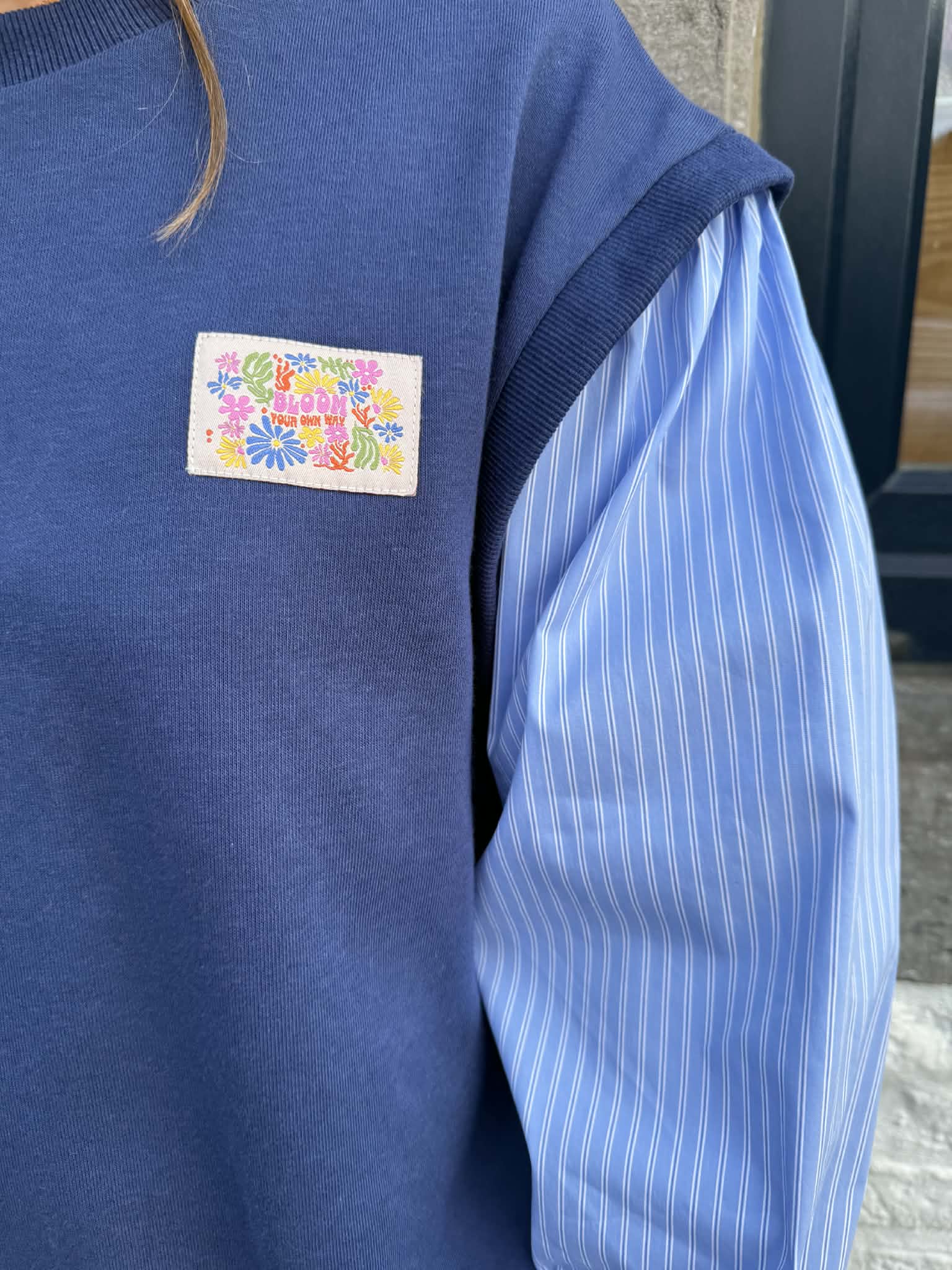 Sweat au look original avec ses manches chemisier, badge fleuri sur le coeur.
